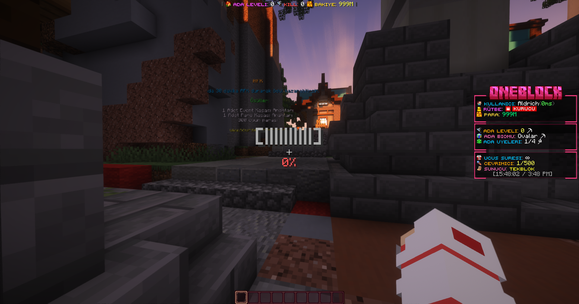 Oneblock, özel bir texture pack içermektedir. Bu nedenle tasarımların doğru şekilde görüntülenebilmesi ve paketin sorunsuz çalışabilmesi için **yalnızca sunucunun taban sürümünde** kullanılması önerilir.